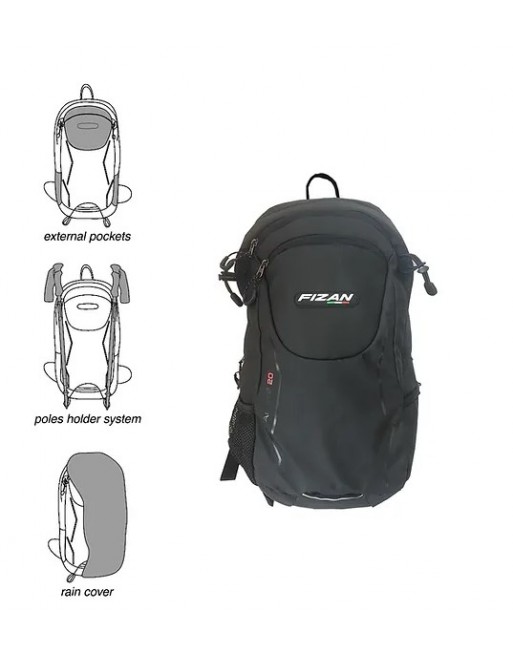 zaino con capienza di 20 lt. 4 tasche esterne, due laterali e due frontali, che permettono di ampliare il volume dello zaino. Le tasche sono dotate di zip ergonomiche resistenti e affidabili.