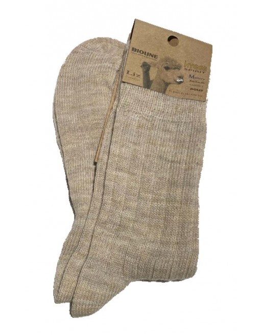 Le calze medie alpaca ‘filato fino’ Hygge Spirit di BIOLINE®  linea ‘Mallory‘ sono pensate per garantire la massima comodità e la massima protezione. Sono calze ecologiche, in stile Hygge Spirit, prodotte con filati che mantengono il colore naturale delle lane.