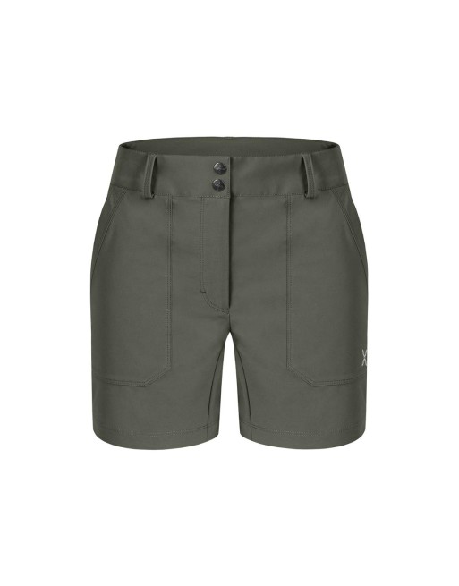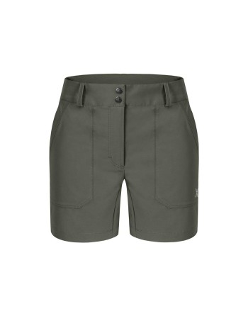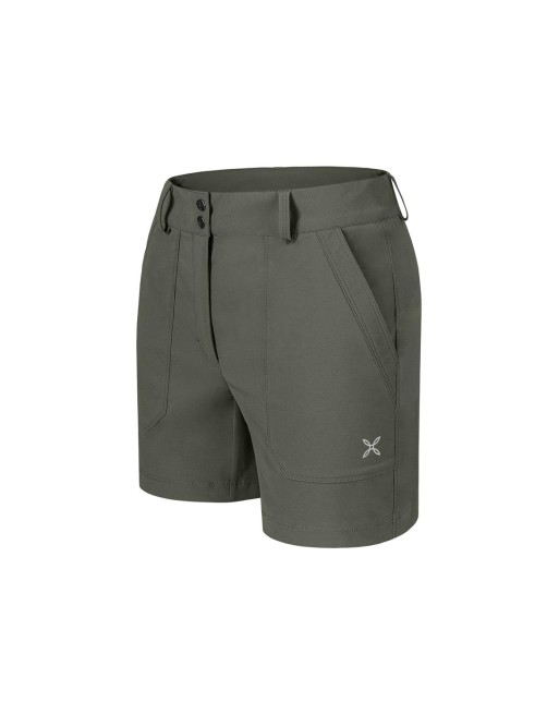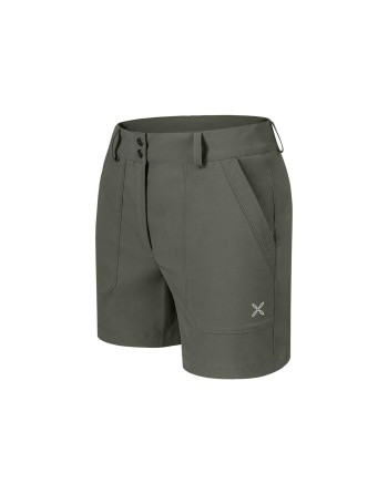 Pantaloncini donna in tessuto 4-way-stretch, traspiranti, con protezione UV e costruzione a doppia trama ultra resistente agli strappi e alle abrasioni. Trattamento idrorepellente DWR senza PFC, vita con zip e bottone, fascia in vita con passanti per cintura, funzionali tasche a filetto.