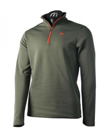 Micropile con collo lupetto a mezza zip in tessuto termico ed altamente traspirante, garzatura interna e lavorazione a microonda no-pilling verso l'esterno.