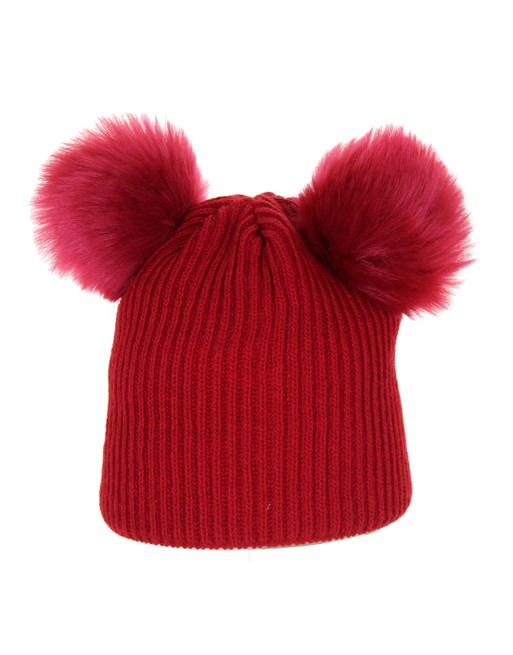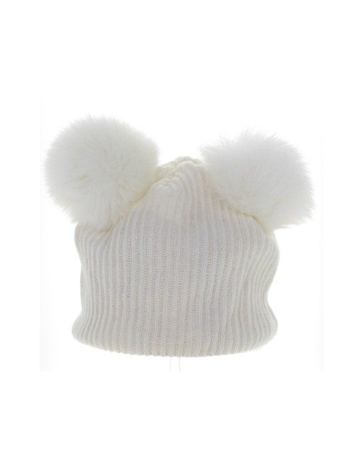Berretto lavorazione costa inglese per bambina con doppio pon pom in ecopelo.