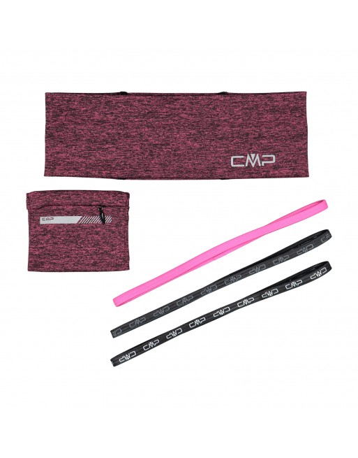 Set da per l'allenamento composto da: fascia per la fronte con apertura per la coda o la treccia, bracciale con tasca e cerniera per i piccoli ogggetti, e 3 fasce per i capelli con all'interno il silicone per maggior aderenza. Dettagli catarifrangenti, per essere più visibili quando è buio.