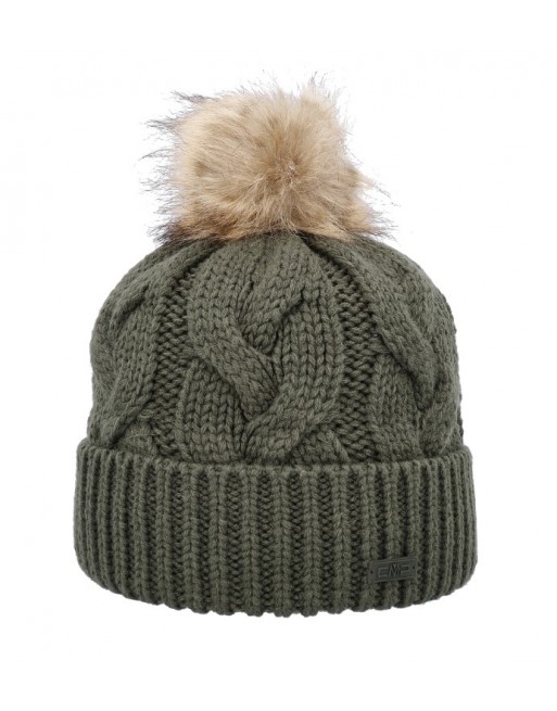 Berretto donna con lavorazione intrecciata e rivestimento interno in pile per garantire una piacevole sensazione di calore durante le fredde giornate invernali. Il pompom in ecopelliccia completa il look invernale