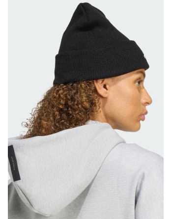 Berretto in morbida maglia a costina con logo ricamato frontale.