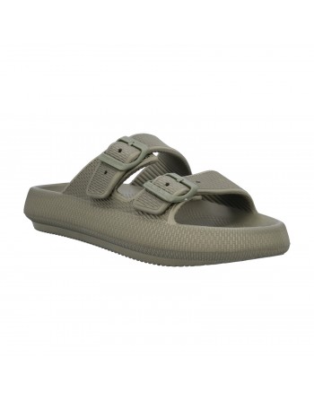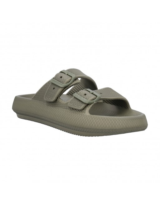 BELEM è la ciabatta monoblocco in EVA, materiale leggero e ammortizzante con due fibbie. Disponibile in taglie doppie, segue la tendenza delle ciabatte mare/piscina strutturate con suola platform.