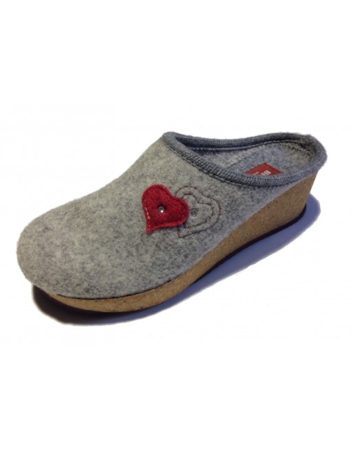 Sabot in feltro naturale di lana 100% made in Italy, regolazione alamaro in pelle con velcro, fodera lana.