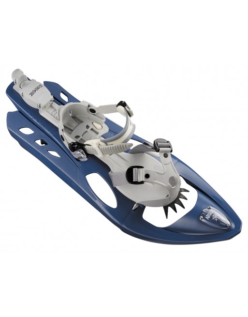 Ciaspola dallo stile all'avanguardia e classico nello stesso tempo, fissato sul telaio Aerotec Design, offre uno dei migliori rapporti qualità/prezzo della collezione Inook. Prodotta in Francia - Blocco posteriore e alzatacco automatico, si aziona con la pressione del bastoncino - Profilo del telaio ad arco sollevato, che permette di "volare" sulla neve e di avere stabilità e tenuta eccellente su pendii ripidi, inoltre la neve non si accumula sotto il telaio - regolazione misura piede con 1 mano Peso: g 1070 x 2 Portata: fino a 120 kg Calzabile dal 34 al 47 (consigliate scarpe da trekking)
