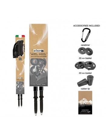 il bastoncino da trekking a 3 sezioni più leggero sul mercato, pesa solo 158 grammi: prodotto interamente in Italia, ha le manopole in eva, comode ed ergonomiche. Ingombro da chiuso: 59 cm, lunghezza massima cm 132