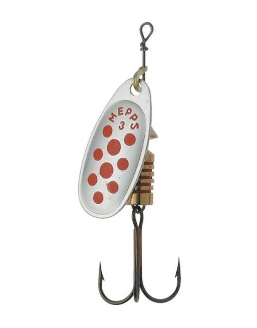 Comet Mepps è un cucchiaino con paletta a foglia, più allungata rispetto a quella del classico Aglia, che emette vibrazioni di intensità omogenee ed intense, aumentando la navigabilità in acque correnti