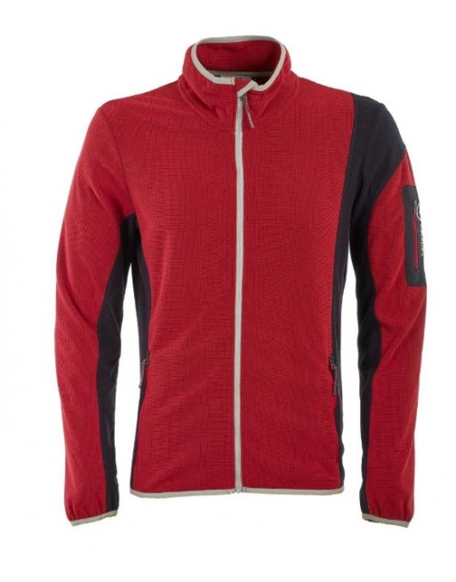 Pile leggero per uomo con zip intera, 2 tasche laterali ed una sul braccio, tutte con chiusura zip.
