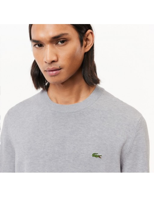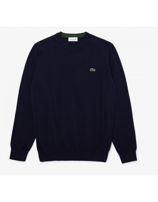 Pullover uomo con collo rotondo perfetto per aggiungere il tocco finale al proprio guardaroba. Un capo eco-friendly in jersey di misto cotone con finiture a costine, arricchito con un iconico coccodrillo verde sul petto.