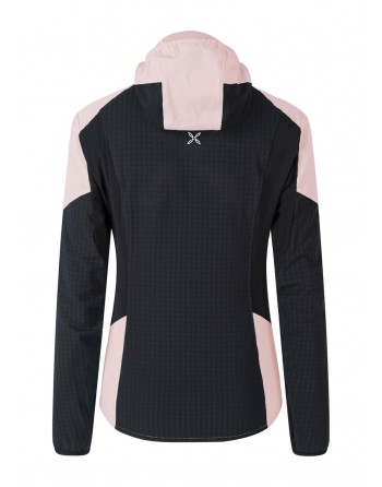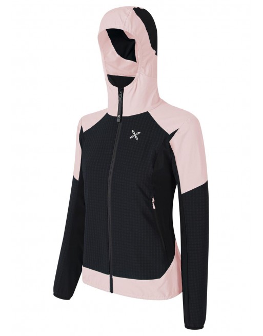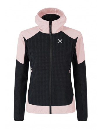 • Tessuto poliestere DWR stretch con costruzione ibrida double-weave e softshell