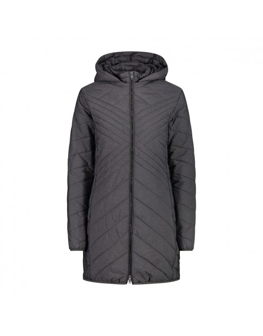 Cappotto con cappuccio staccabile e imbottitura in DuPont Sorona Aura che è parzialmente realizzata con ingredienti vegetali rinnovabili e prodotta con particolare attenzione all'ambiente, morbida e facilmente comprimibile. Il tessuto matt dona un look essenziale e classico, perfetto nelle giornate autunnali ed invernali, sia in montagna che in città. È water resistant grazie al trattamento idrorepellente esterno (PFC Free) che impedisce la penetrazione dell'acqua all'interno. Due le tasche laterali con zip.