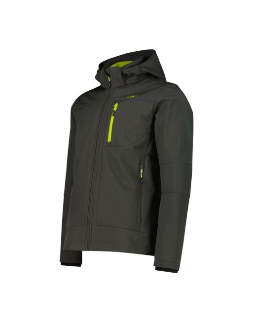 Giacca uomo con cappuccio staccabile in softshell, antivento ed impermeabile, fodera interna in pile.