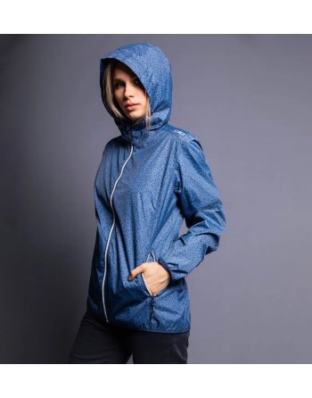 Giacca antipioggia donna con cappuccio fisso in tessuto Ripstop, in grado di proteggere da vento e pioggia. Zip frontale con patta antivento e antisfregamento, polsini elasticizzati, due tasche laterali e una interna. Estremamente leggera e facilmente richiudibile nell'astuccio in dotazione.