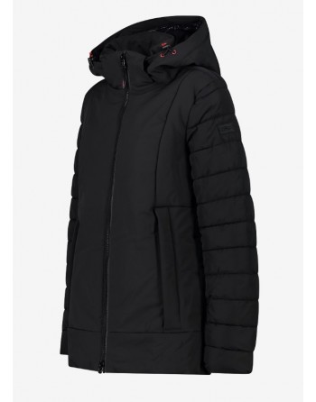 giacca CMP sustainable realizzata in poliestere riciclato, una delle fibre tessili più sostenibili in quanto realizzata tramite il recupero di scarti e rifiuti. L'imbottitura è in fibra fatta con Sorona®, un polimero realizzato in parte con ingredienti vegetali rinnovabili che offre un'eccezionale morbidezza e comfort, oltre ad un'elevata capacità di isolamento. Il trattamento water repellent (PFC Free) offre al capo impermeabilità e traspirabilità (WP10.000, MVP 5.000) Completano il capo il cappuccio staccabile, due tasche esterne con zip due interne.