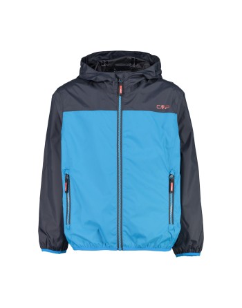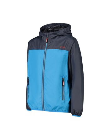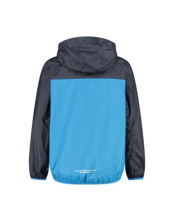 Giacca antipioggia con cappuccio fisso in grado di proteggere da vento e pioggia. Numerosi i dettagli che arricchiscono il capo, come la zip frontale con patta antivento e antisfregamento, i polsini elasticizzati, le due tasche laterali. È estremamente leggera e facilmente richiudibile in una delle tasche.