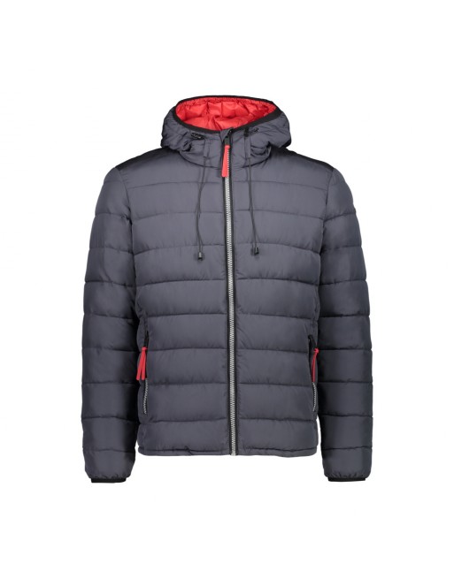 Giacca uomo per la città ed il tempo libero, con imbottitura sintetica e cappuccio fisso regolabile. Tiretti zip ed interno in contrasto di colore
