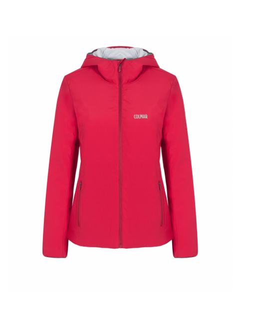 Giacca donna per la mezza stagione con cappuccio fisso, tessuto esterno stretch con trattamento idrorepellente ed imbottitura termica. N.b.: vestibilità slim, si consiglia l'acquisto di una taglia superiore.