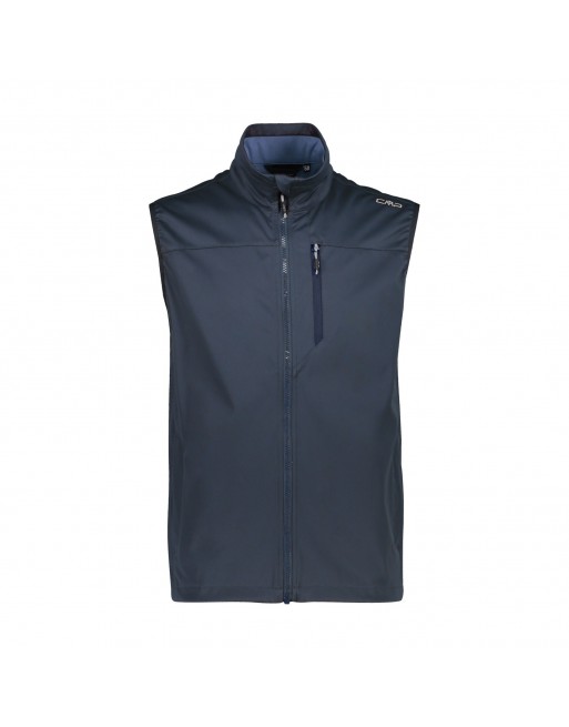 Gilet leggero per uomo in tessuto antivento stretch, 2 tasche laterali ed una sul petto, tutte con chiusura zip