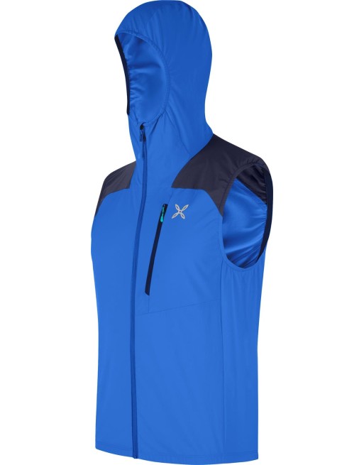 Gilet uomo leggero antivento con cappuccio: tessuto elasticizzato 4-way-stretch che asseconda i movimenti per la massima mobilità, trattamento idrorepellente che protegge dalle precipitazioni leggere, mentre l’UPF 50+ blocca i raggi UV dannosi.