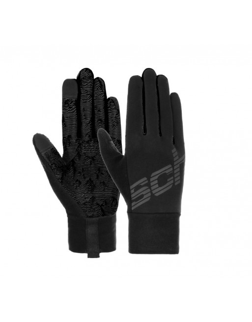 Guanto aderente grazie al tessuto in pile stretch, caldo e traspirante;  palmo stampato in silicone per una presa ottimale e un'applicazione sulla punta del pollice e dell'indice che consente di utilizzare i dispositivi mobili.