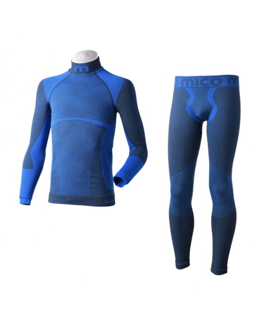 Completo intimo termico composto da lupetto manica lunga e calzamaglia senza piede per bambino/ragazzo (da 4 a 12 anni), struttura differenziata senza cuciture, asciugatura rapida