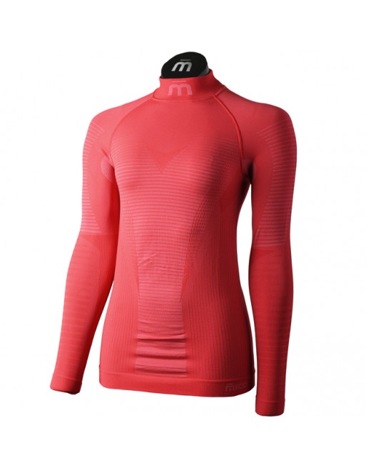 Maglia intima termica donna invernale con collo a lupetto, senza cuciture, con struttura bicomponente: dryarn a contatto della pelle e poliammide all'esterno.
