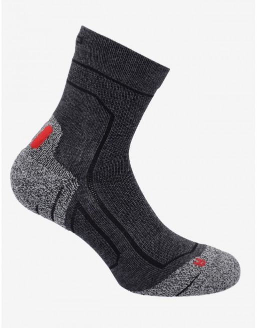Calzino sopra la caviglia in filato Softair Plus, morbido, leggero e traspirante. Rinforzi in spugna su punta e tallone per garantire la massima protezione durante le escursioni. Disegno a maglia più morbida su collo del piede che garantisce comfort durante l'utilizzo. Prodotto in Italia.