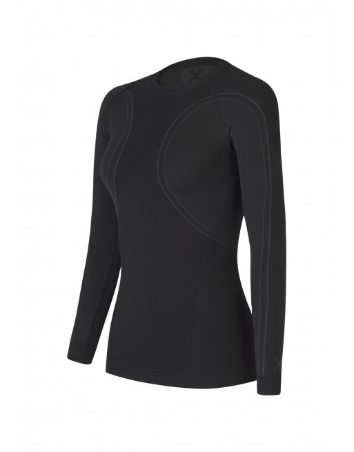 Maglia termica e traspirante per donna a manica lunga, girocollo, tessuto Dryarn, elaticizzata in 4 direzioni, da utilizzare per le uscite invernali in clima piuttosto freddo
