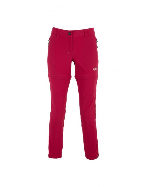 Pantalone donna in tessuto tecnico elasticizzato, leggero e fresco, ideale per attività all'aperto e viaggi. La zip laterale permette trasformarlo in pantaloncino senza dover togliere le scarpe. Realizzato con materiali riciclati, tessuto certificato Blu Sign
