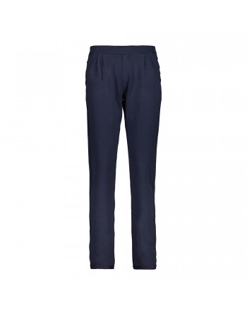 Pantalone donna taglio tuta in cotone garzato, con vita elastica in evidenza regolabile con cordino, 2 pinces sul davanti e bordo risvoltato sul fondo. Ottima vestibilità, comodo in vita, mentre sulla gamba ha un fit asciutto ma non aderente