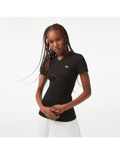 T-SHIRT LACOSTE DONNA SCOLLO V LAVORAZ. COSTINE TF5459