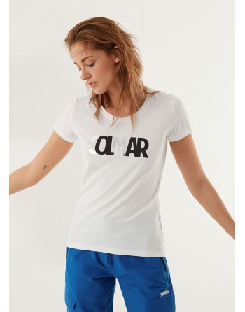 T-shirt donna in cotone elaticizzato con logo sfumato sul petto