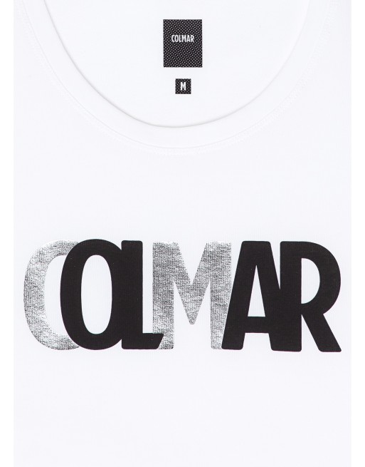 T-shirt donna in cotone elaticizzato con logo sfumato sul petto
