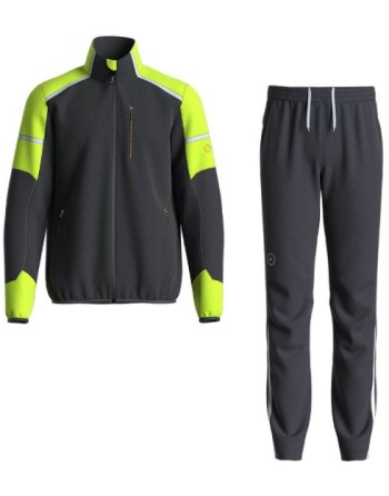 tuta perfetta per ogni attività outdoor sportiva e ricreativa. Gli inserti in tessuto 4way stretch, ad alta resistenza all'abrasione nei punti di maggior sollecitazione dei movimenti, migliorano notevolmente il suo utilizzo. La giacca è costruita con due comode tasche con zip in vita, una tasca al petto molto capiente, regolazione con coulisse elastica in vita. Il pantalone ha due tasche nella parte frontale e una tasca con zip posteriore, e una pratica regolazione con coulisse in vita.
