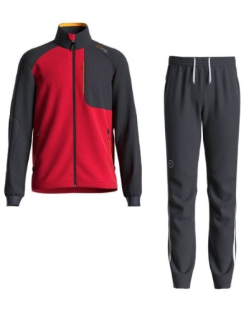 tuta perfetta per ogni attività outdoor sportiva e ricreativa. Gli inserti in tessuto 4way stretch, ad alta resistenza all'abrasione nei punti di maggior sollecitazione dei movimenti, migliorano notevolmente il suo utilizzo. La giacca è costruita con due comode tasche con zip in vita, una tasca al petto molto capiente, regolazione con coulisse elastica in vita. Il pantalone ha due tasche nella parte frontale e una tasca con zip posteriore e una pratica regolazione con coulisse in vita.