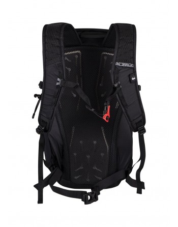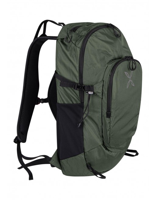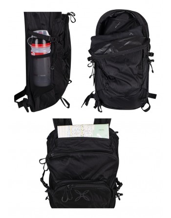 Nylon ultra resistente 6 ROBIC® con ripstop a tre strati e trattamento idrorepellente; scomparto principale da 22 litri, fischietto sulla cinghia pettorale, doppie cinghie per fissare piccozze o bastoncini